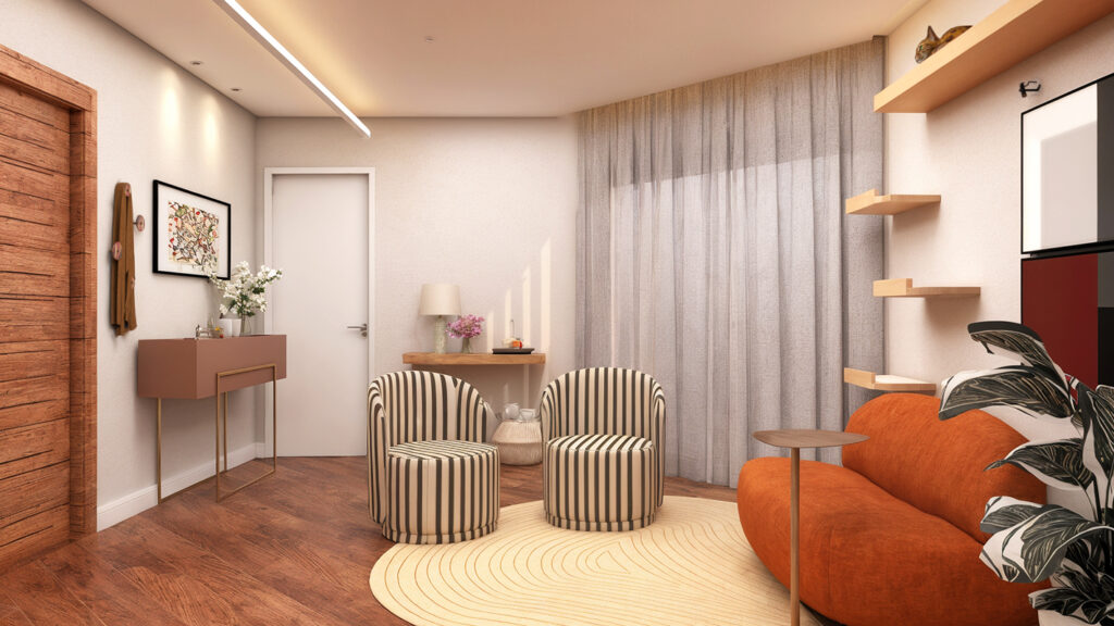 Nossa abordagem equilibra design, funcionalidade, bem-estar e essência, criando ambientes que acolhem e traduzem a personalidade de quem vive ali.